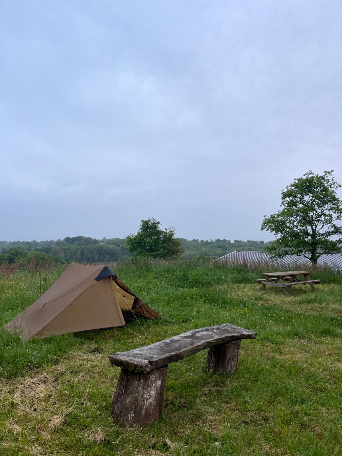 Our large field offers plenty of space for pilgrims who wish to camp or bivouac in peace and quiet. There is no fixed fee for camping; we simply ask for a donation. Campers have access to the toilet- and shower-facilities and picnic tables. Use of kitchen is available for a small fee of €3.
