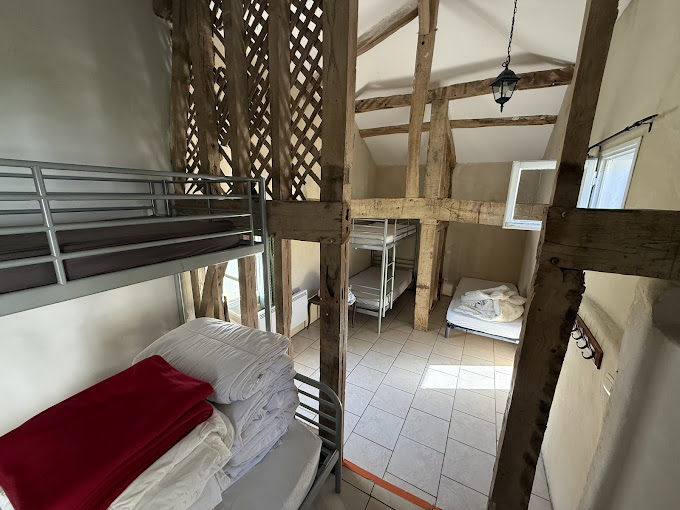 On the second floor of our sixteenth-century farmhouse, you will find three spacious private rooms, offering both double and single beds. These rooms are ideal for pilgrims who value a bit more privacy. All rooms open onto a large shared lounge/library area with a sofa, table, and basic kitchen facilities, including a kettle and a refrigerator.